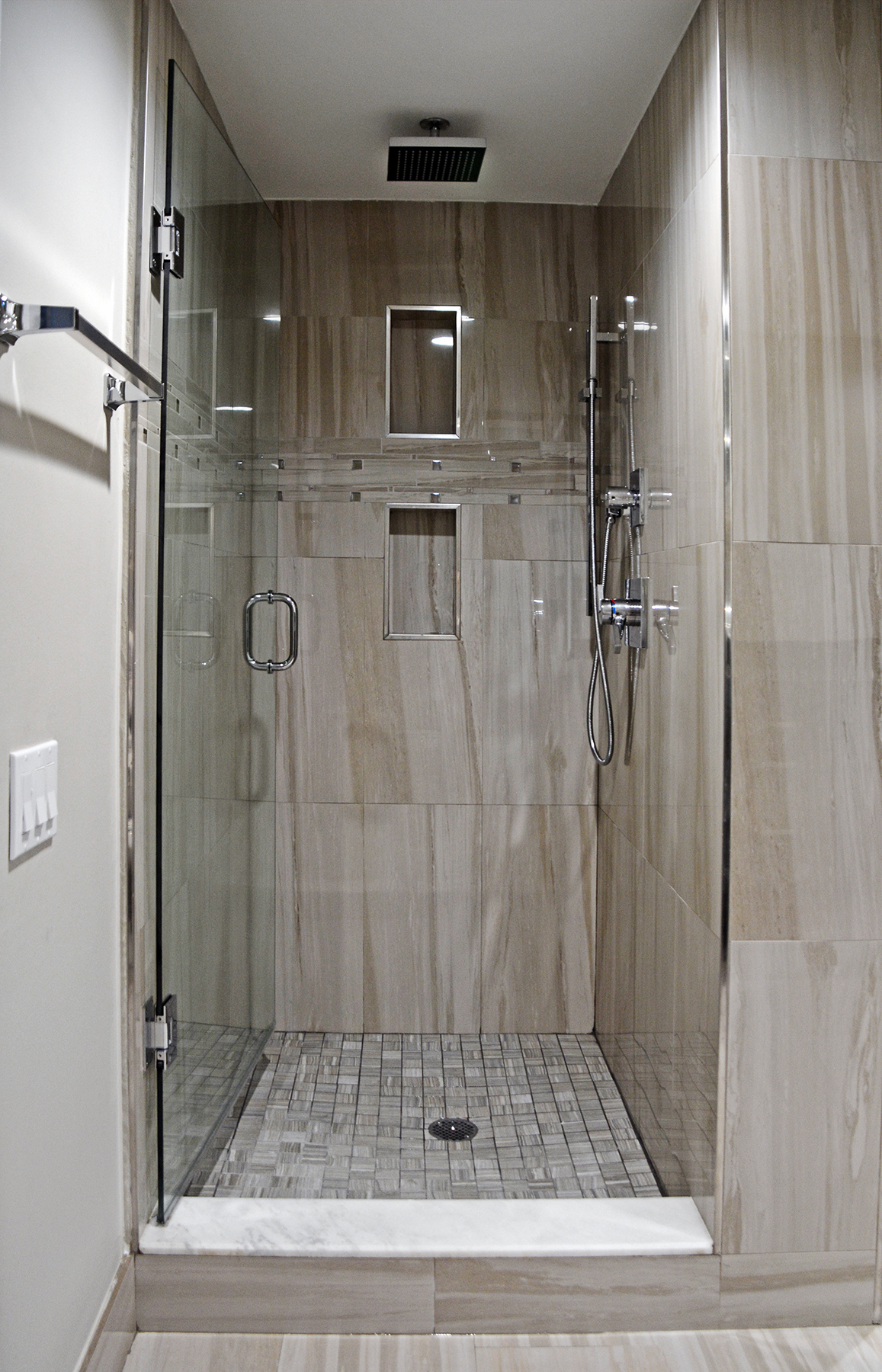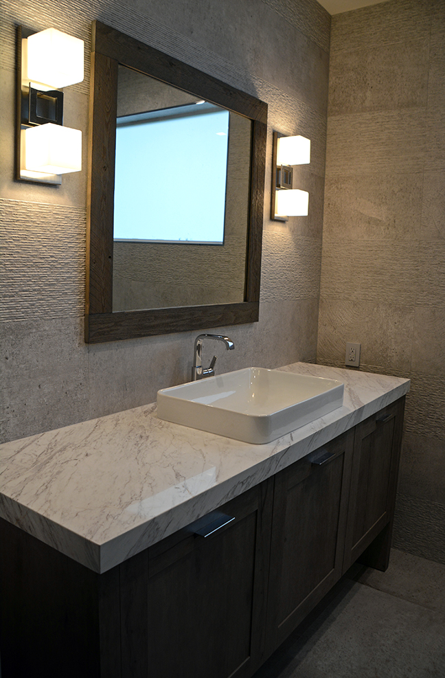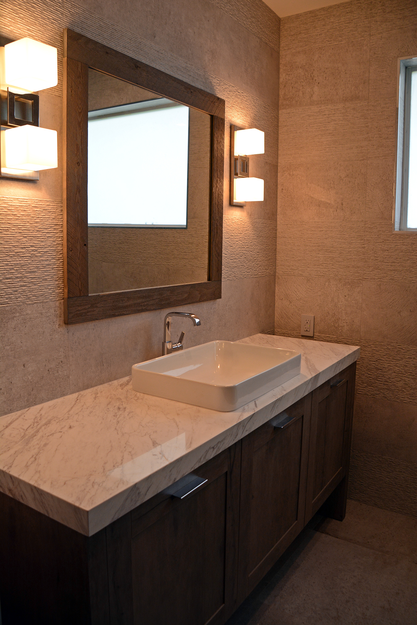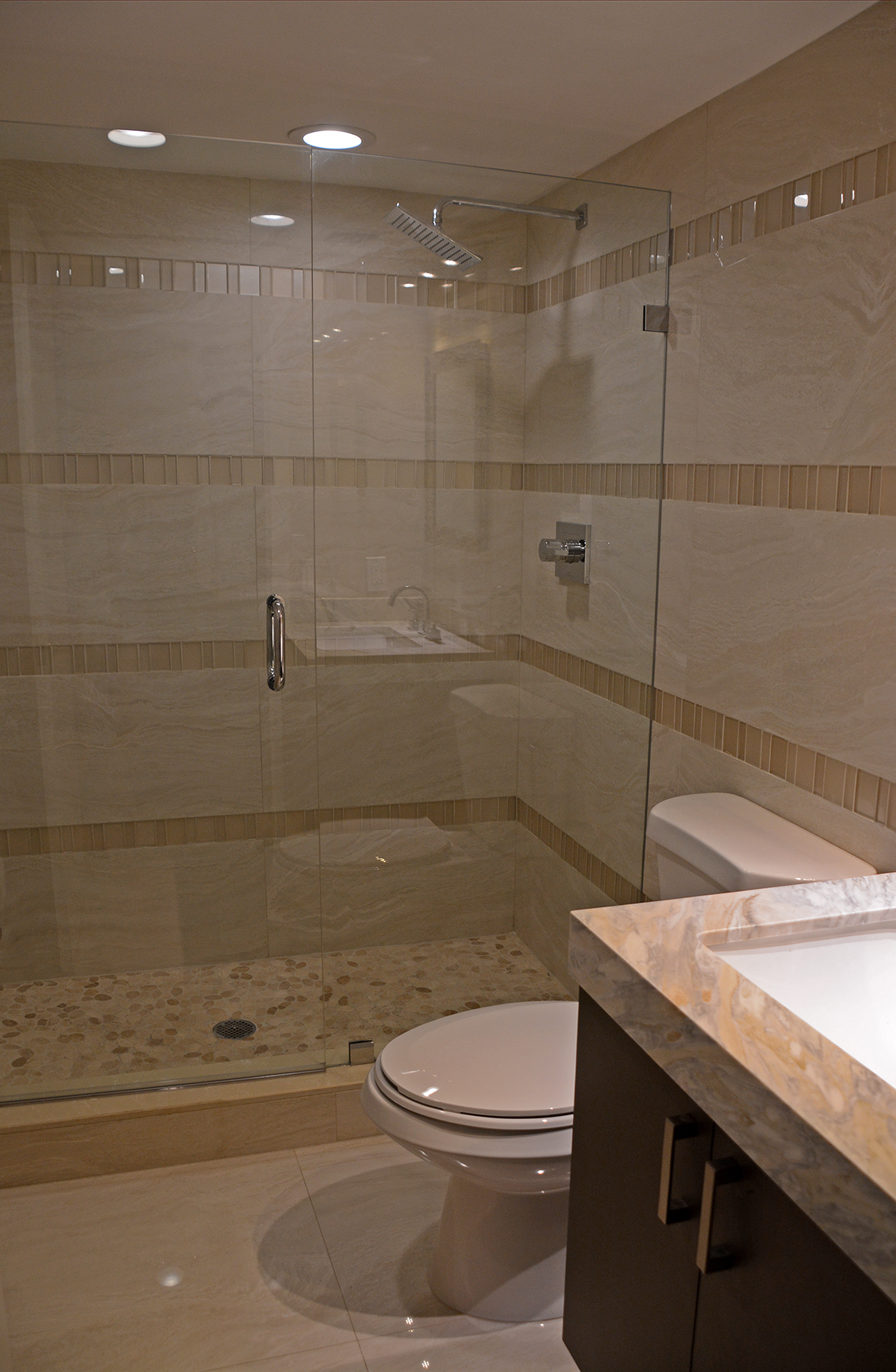 Bathroom installation and renovation encompasses flooring, walls, glass enclosures and custom sinks and cabinets.