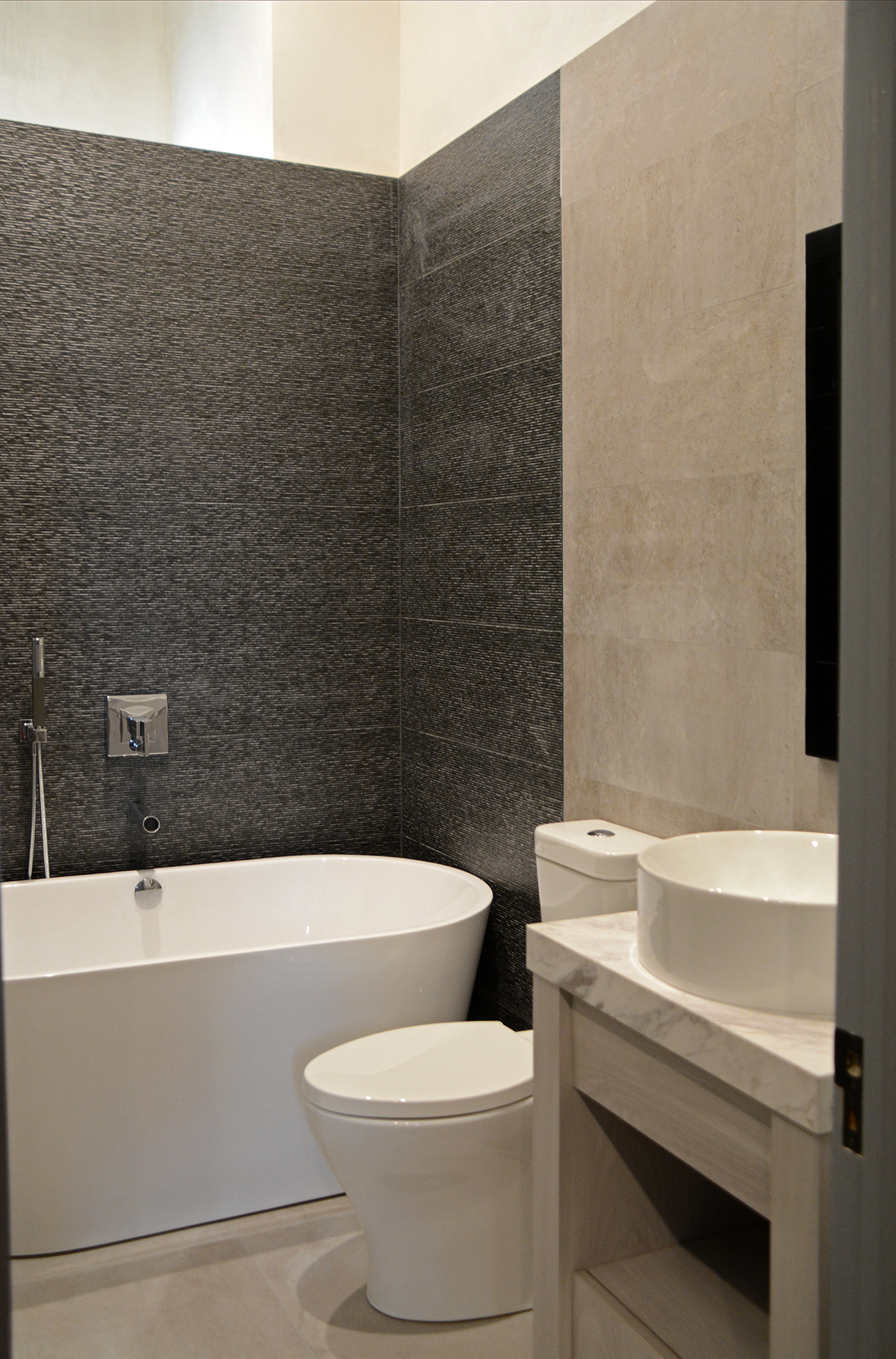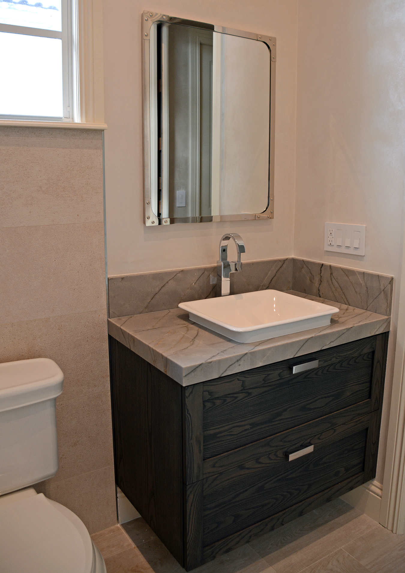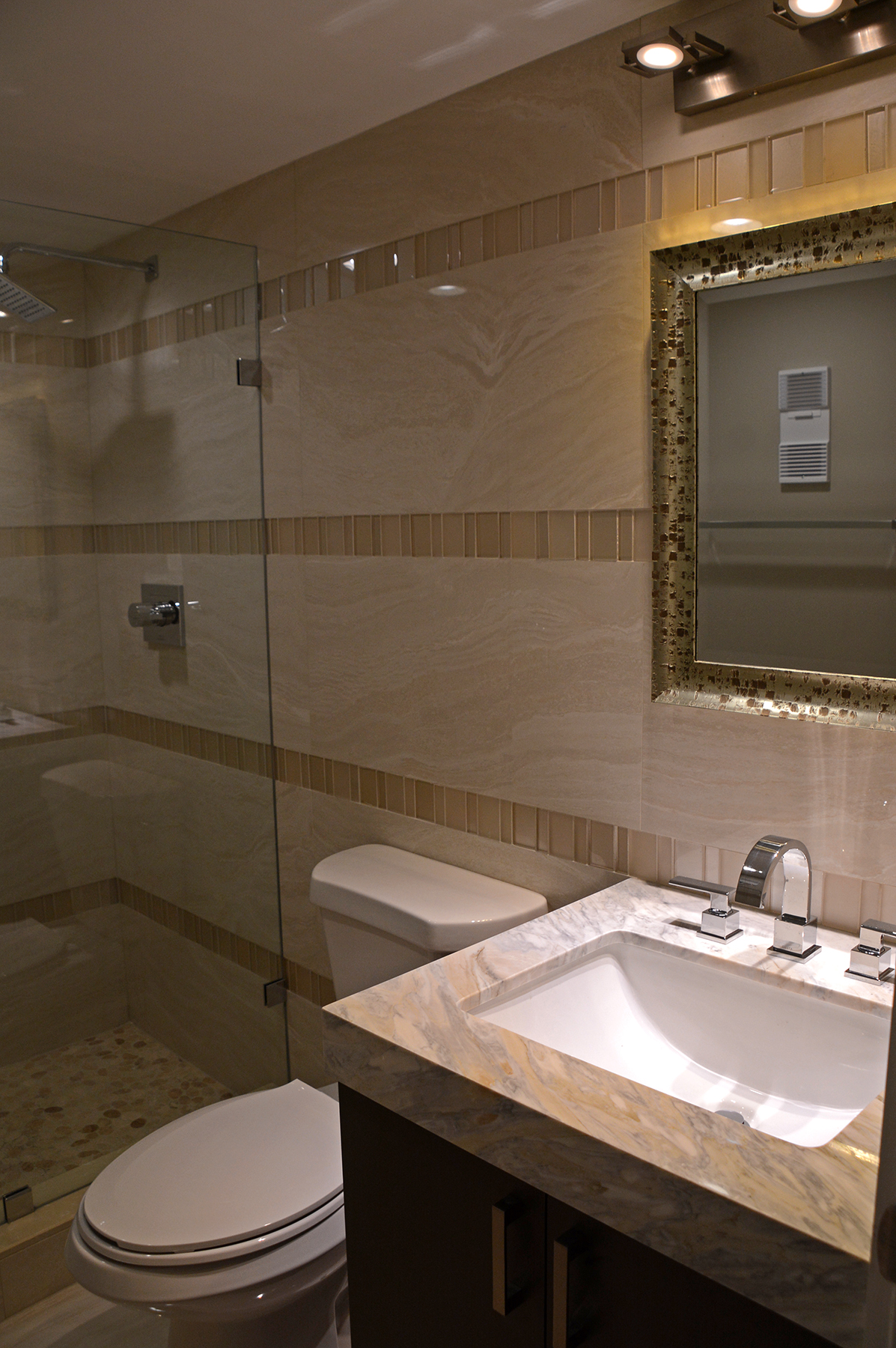 Bathroom installation and renovation encompasses flooring, walls, glass enclosures and custom sinks and cabinets.